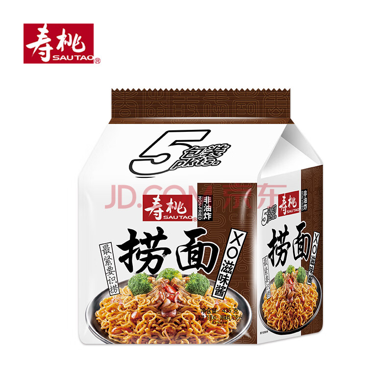 商品相册:寿桃XO滋味酱捞面非油炸方便面速食泡面早餐拌面条5包装435g/袋第