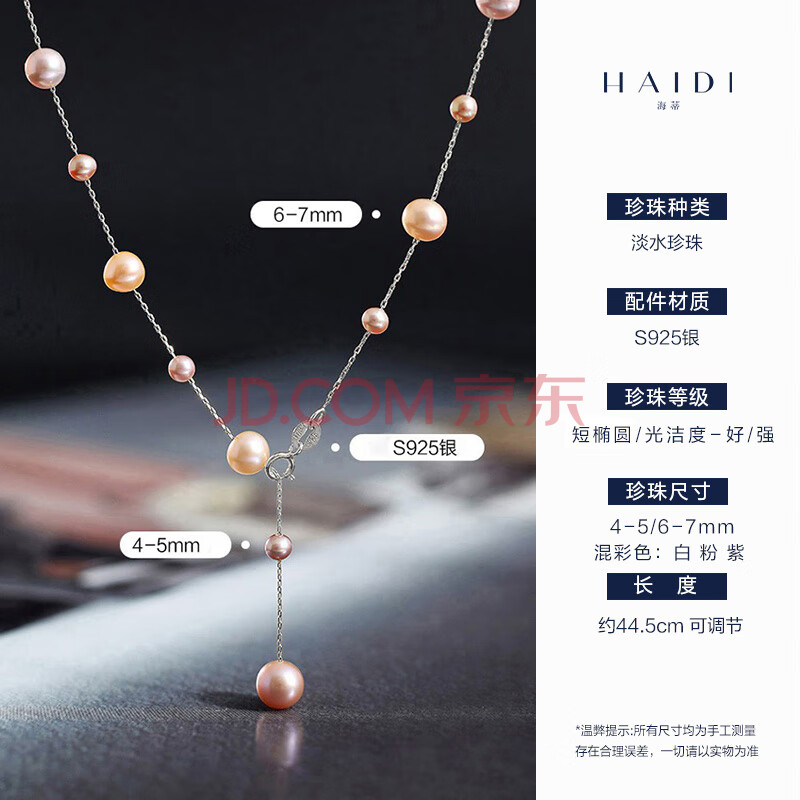 商品相册:海蒂S925银4-7mm混彩色无核满天星淡水珍珠项链女送女友礼物附证书第