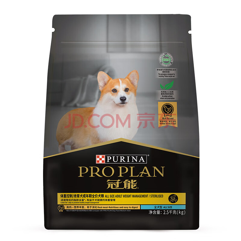 商品相册:冠能狗粮体重控制绝育犬成犬狗粮全价2.5kg 高蛋白低脂肪健康减轻体重第