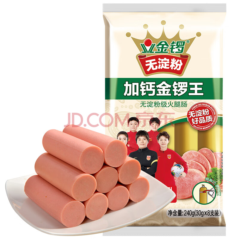 商品相册:金锣 火腿肠 无淀粉加钙金锣王 30g*8支出游露营烧烤肠第1张/共5