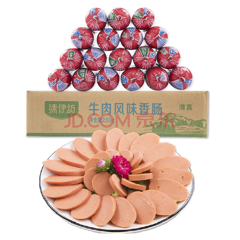 商品相册:双汇清伊坊清真牛肉风味香肠火腿肠140g*18支 整箱 休闲零食 露营第