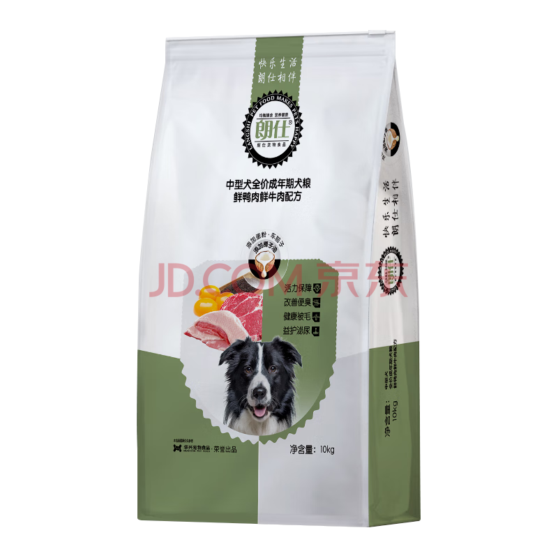 商品相册:朗仕成犬狗粮 边牧斗牛比格犬中型犬通用型 全价鲜肉成犬粮10kg/20斤第