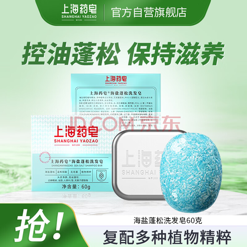 商品相册:上海药皂香皂海盐蓬松洗发皂60g弱酸性无皂基植物精粹洗发水清洁头皮第