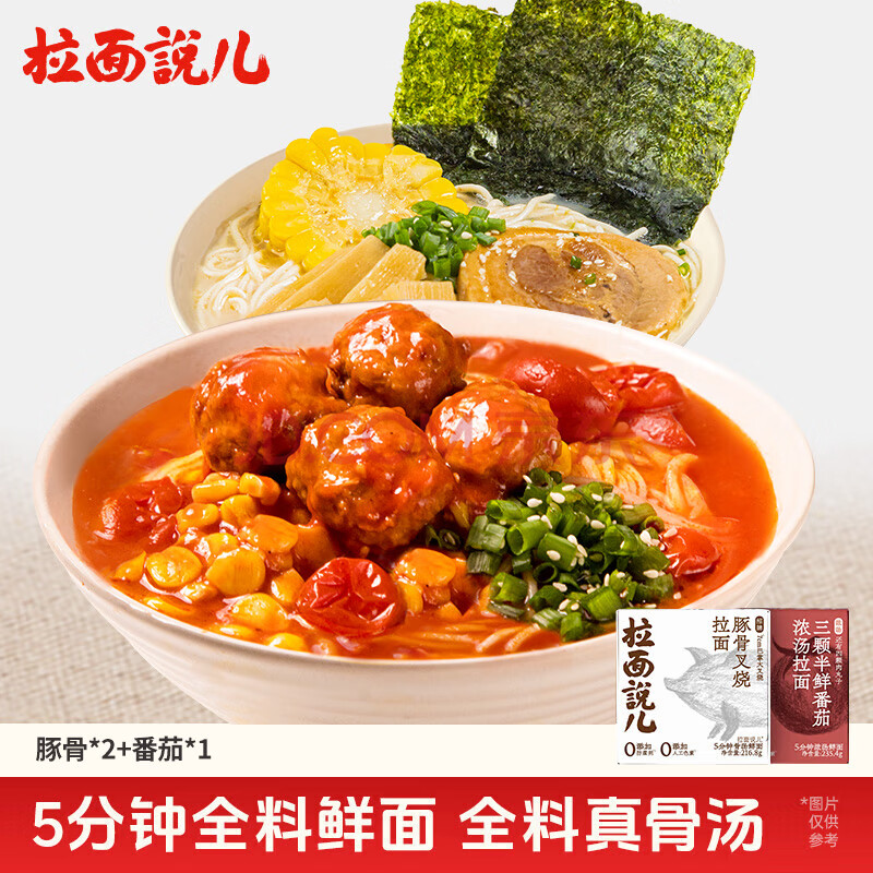商品相册:拉面说儿速食鲜面条非油炸方便面3盒装(招牌豚骨*2+番茄*1)669g第