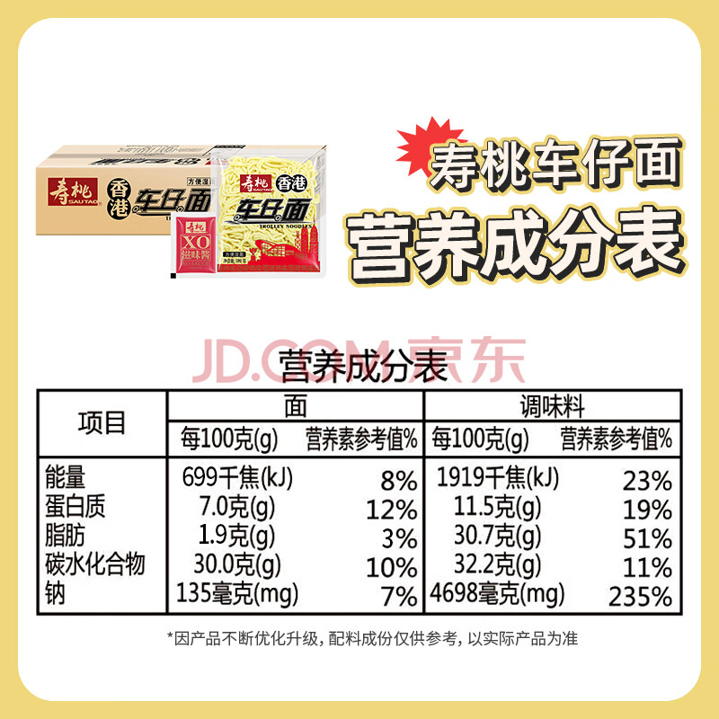 商品相册:寿桃港式车仔面 方便面非油炸速食泡面拌面早餐30包内含酱包整箱6150g第1张/共7
