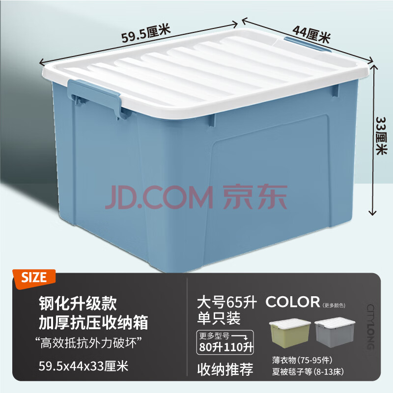 商品相册:禧天龙塑料收纳箱钢化升级款储物箱抗压衣物车载整理箱 65L石青1个装第