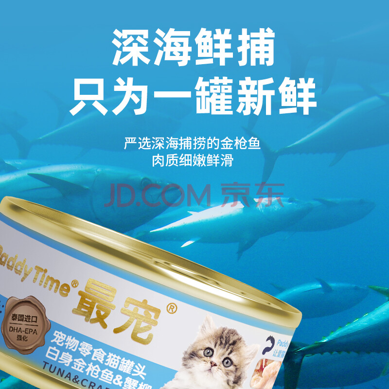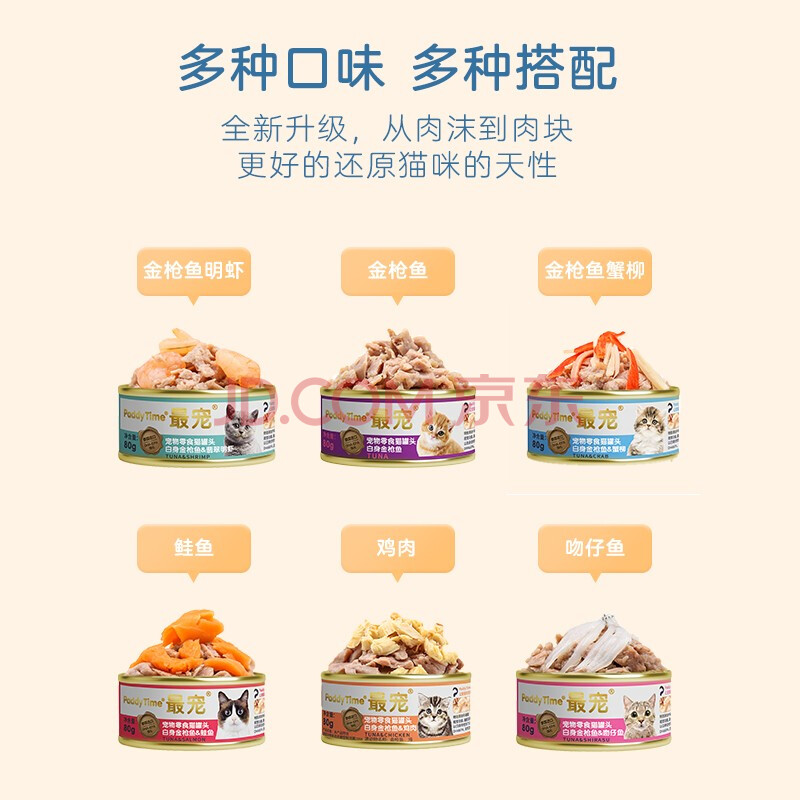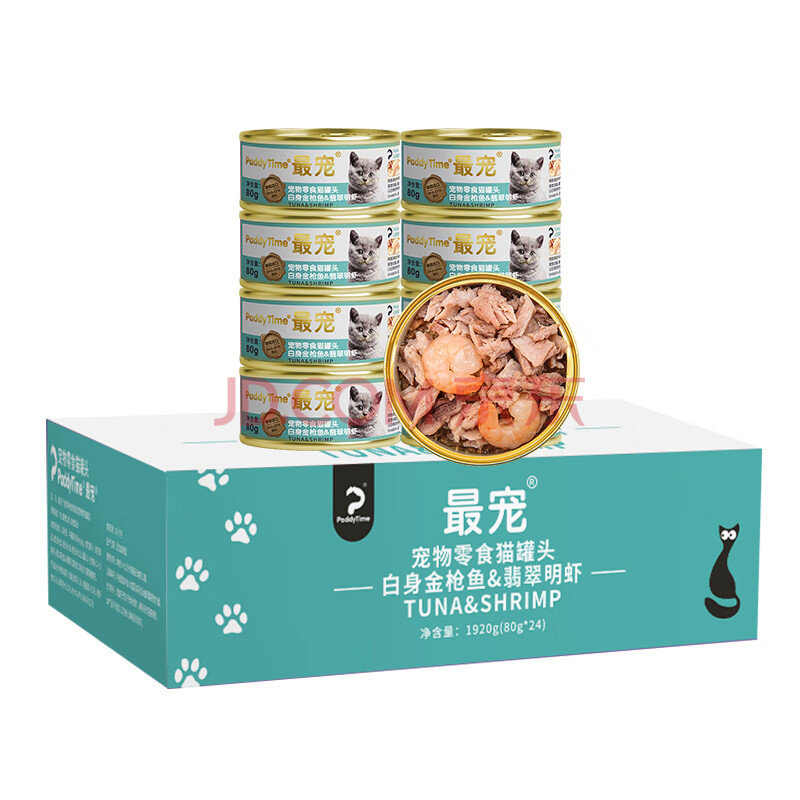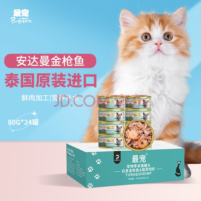 商品相册:最宠(Paddy Time)泰国进口猫罐头80g*24罐金枪鱼明虾 成幼猫零食宠物营养猫咪湿粮第
