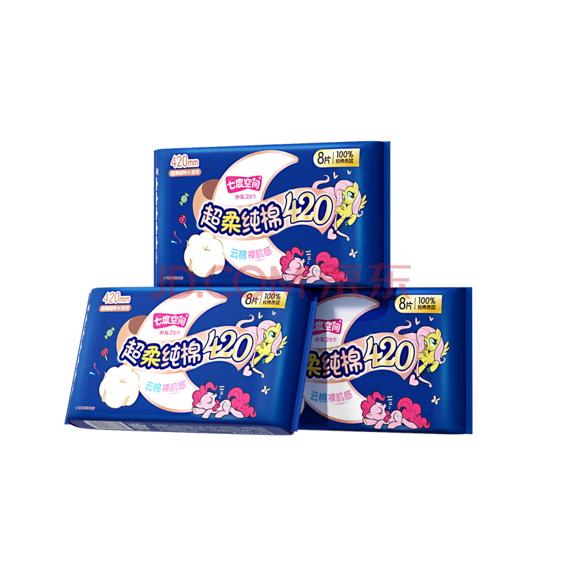 商品相册:七度空间少女420超长夜用卫生巾100%纯棉亲肤超薄透气24片【新国标认证】第