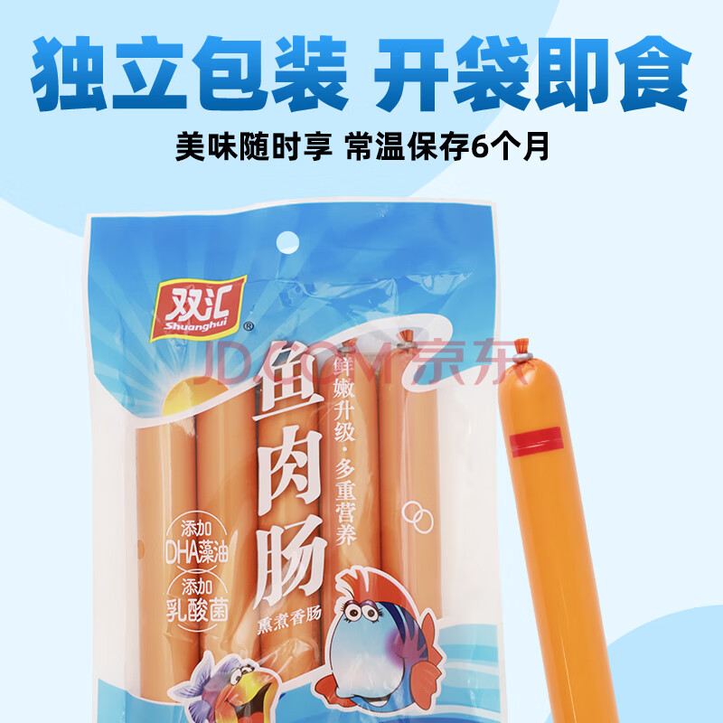 商品相册:双汇 鱼肉肠火腿肠 40g*10支 香肠 海鲜肠 休闲零食 添加DHA藻油 第