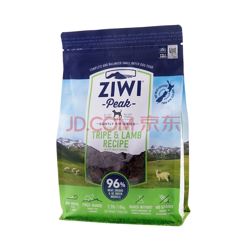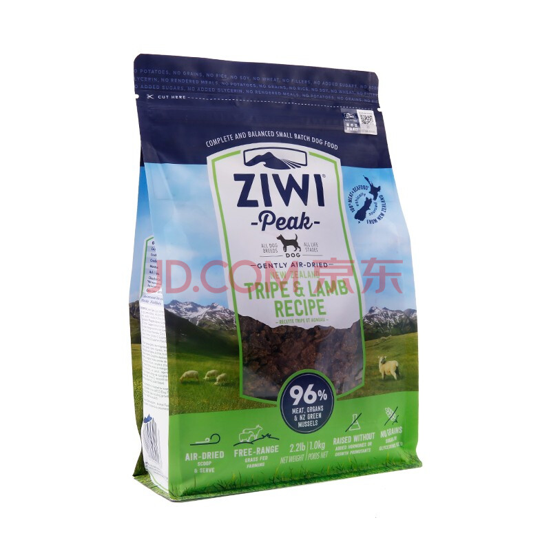 商品相册:滋益巅峰(ZIWI)无谷风干羊肚羊肉狗粮1kg *1袋 幼犬成犬通用型主粮第