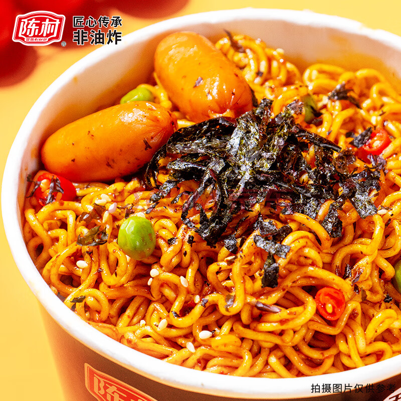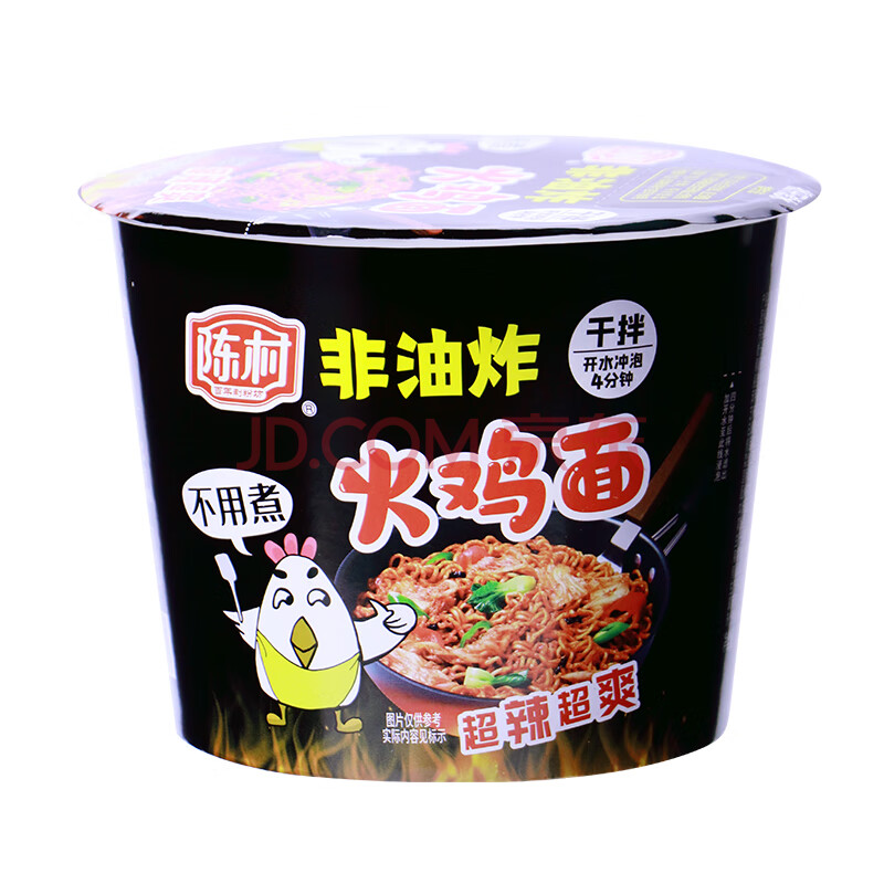 商品相册:陈村 火鸡面 100g*12桶 非油炸中式超辣经典干拌面方便面夜宵代餐速食第