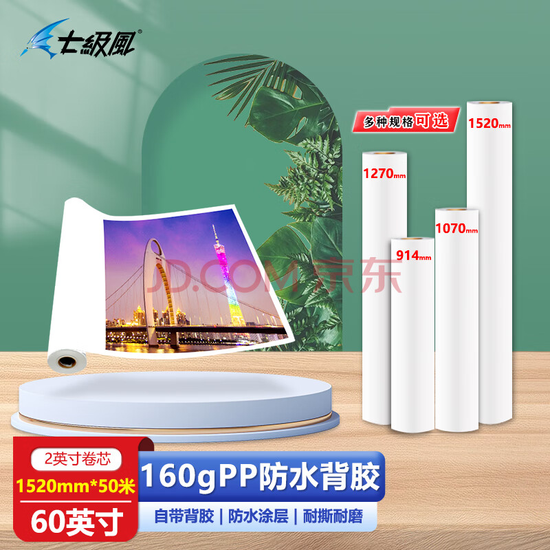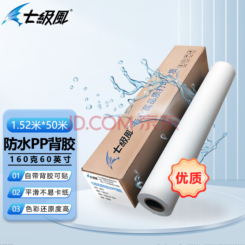 商品相册:七级风防水背胶PP户内水性优质160克1520mm*50米作训材料喷绘广告卷筒卷材适用全系列写真机绘图仪第
