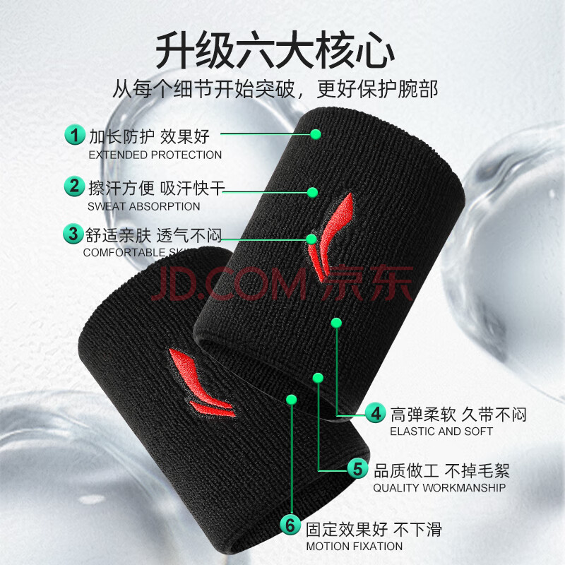 商品相册:李宁(LI-NING)健身护腕男羽毛球篮球卧推运动擦汗吸汗跑步防扭伤腕带手腕巾第