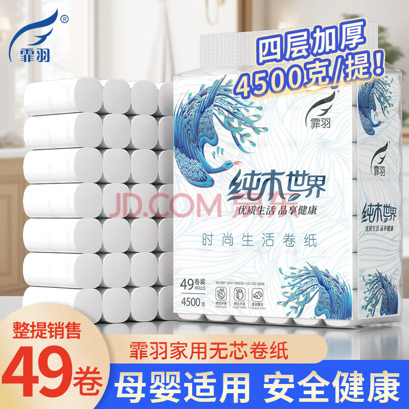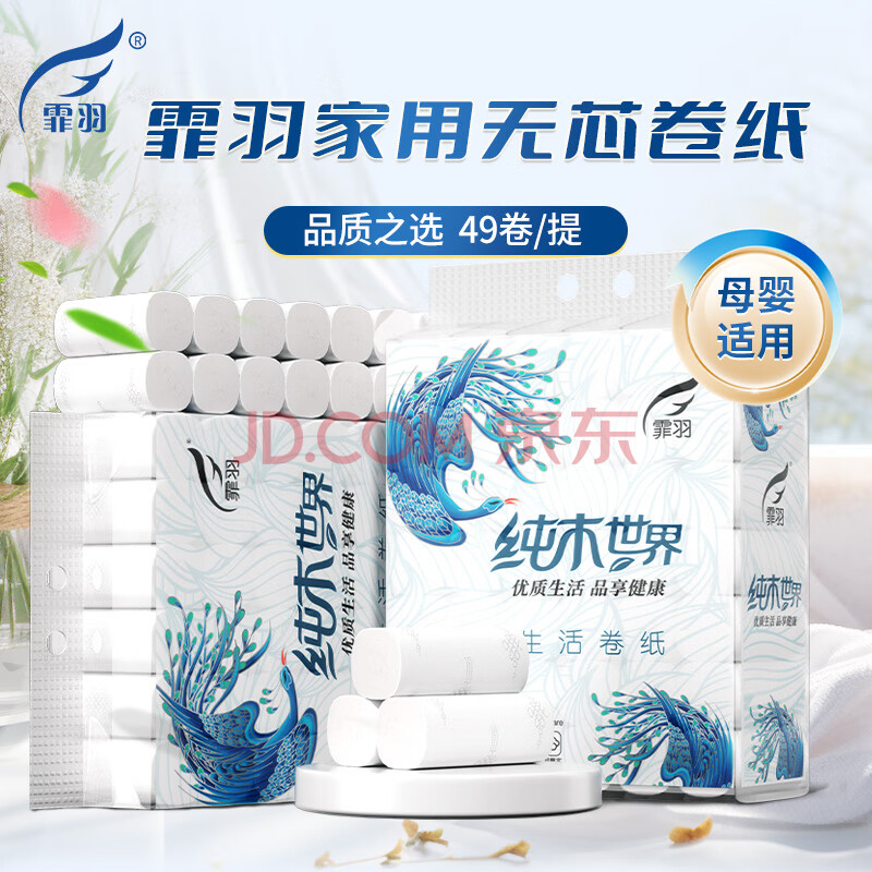 商品相册:霏羽无芯卷纸4层91克*49卷家用卷纸巾卫生间卷纸厕纸卫生纸FY-8818第