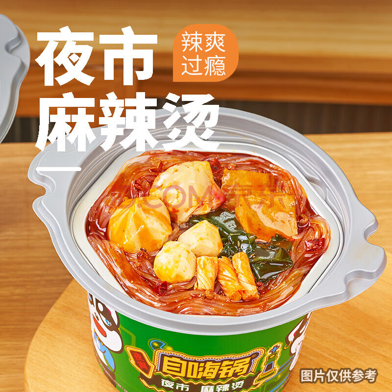 商品相册:自嗨锅自热火锅 方便素食免煮出游零食露营野餐夜市麻辣烫独享装143g/桶第