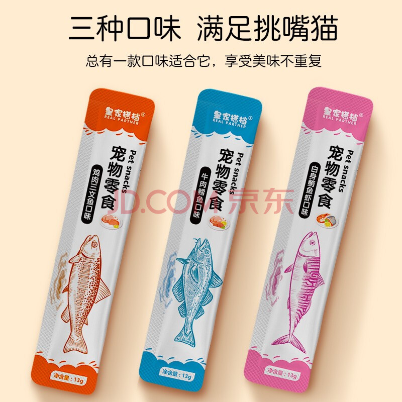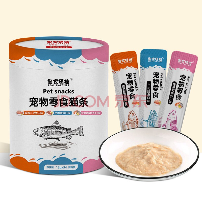 商品相册:皇家搭档猫条猫零食三种口味混合装成猫幼猫营养猫条702g(13g*54支)一桶第