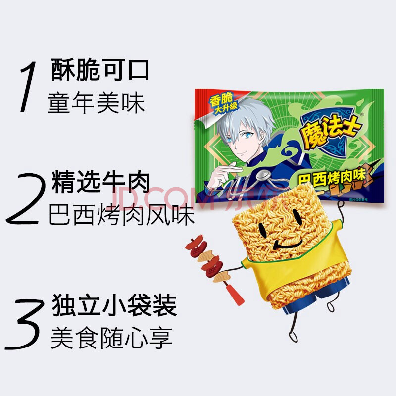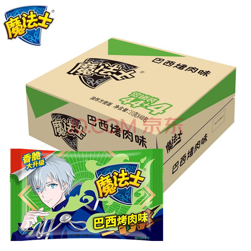 商品相册:魔法士干脆面方便面即食干吃休闲小零食捏碎面速食 巴西烤肉味20g*48袋第