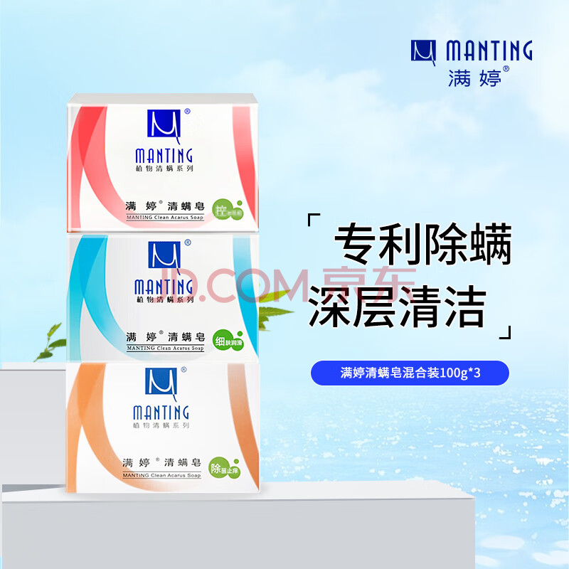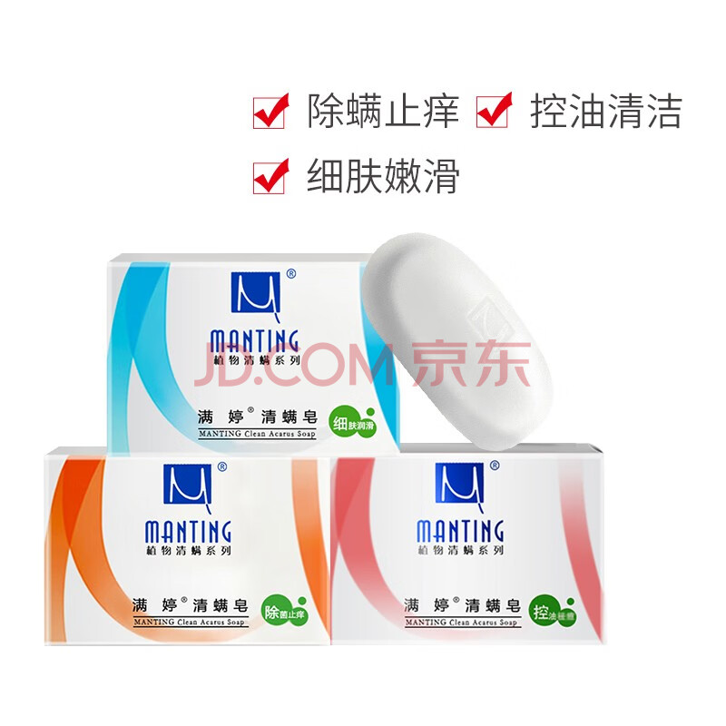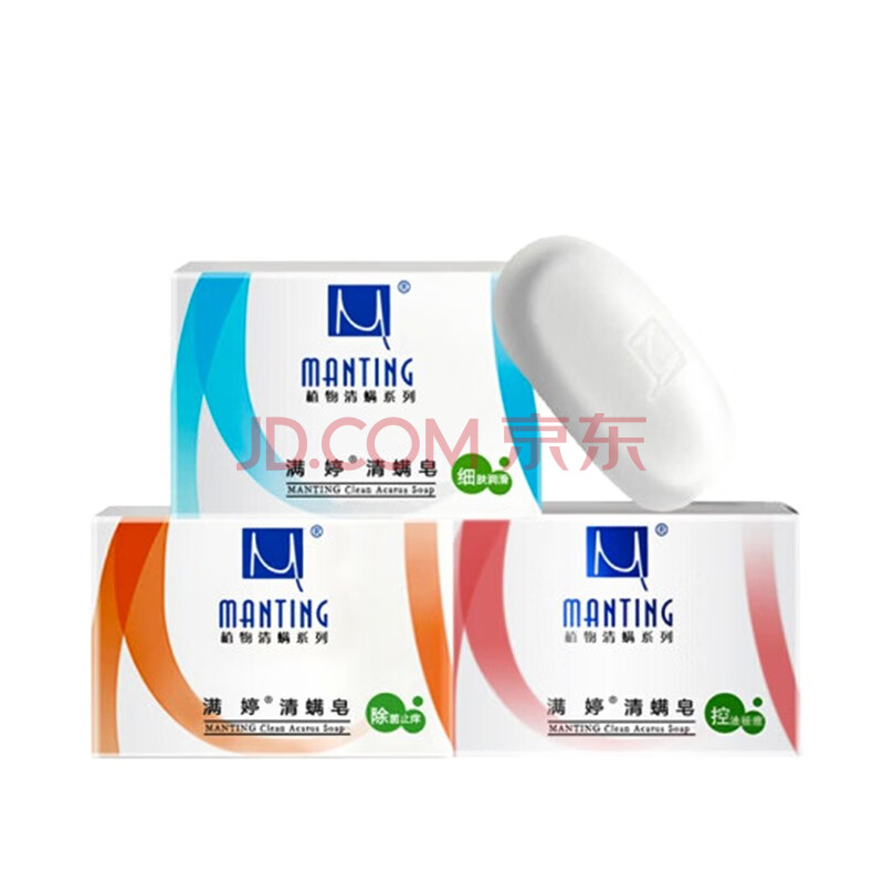 商品相册:满婷(MANTING)清螨皂100g*3(除菌止痒皂+控油祛痘皂+细肤润滑皂 除螨杀菌背痘)第