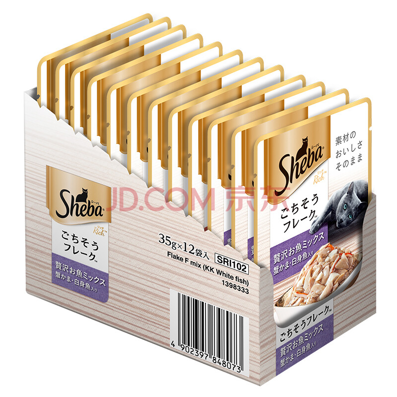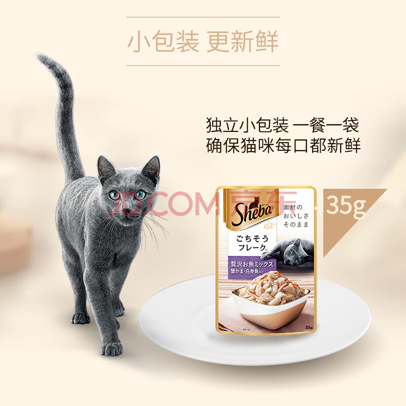 商品相册:希宝原装进口猫粮肉块软包吞拿鱼白身鱼蟹柳成猫35g*12整盒白金妙鲜包第