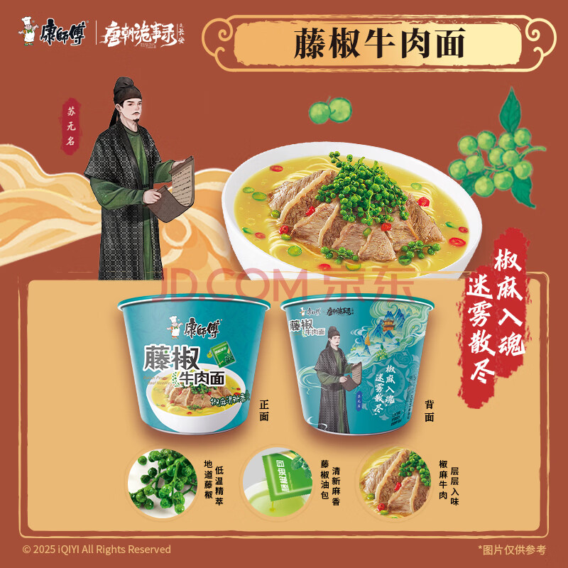 商品相册:康师傅 方便面 经典藤椒牛肉桶面110g*12 泡面整箱速食 方便食品第