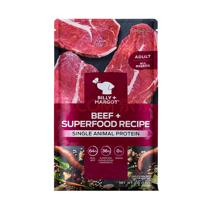 商品相册:比利玛格(BILLY+MARGOT)狗粮成犬牛肉配方雪纳瑞柯基泰迪天然无谷进口狗粮 1.8kg第