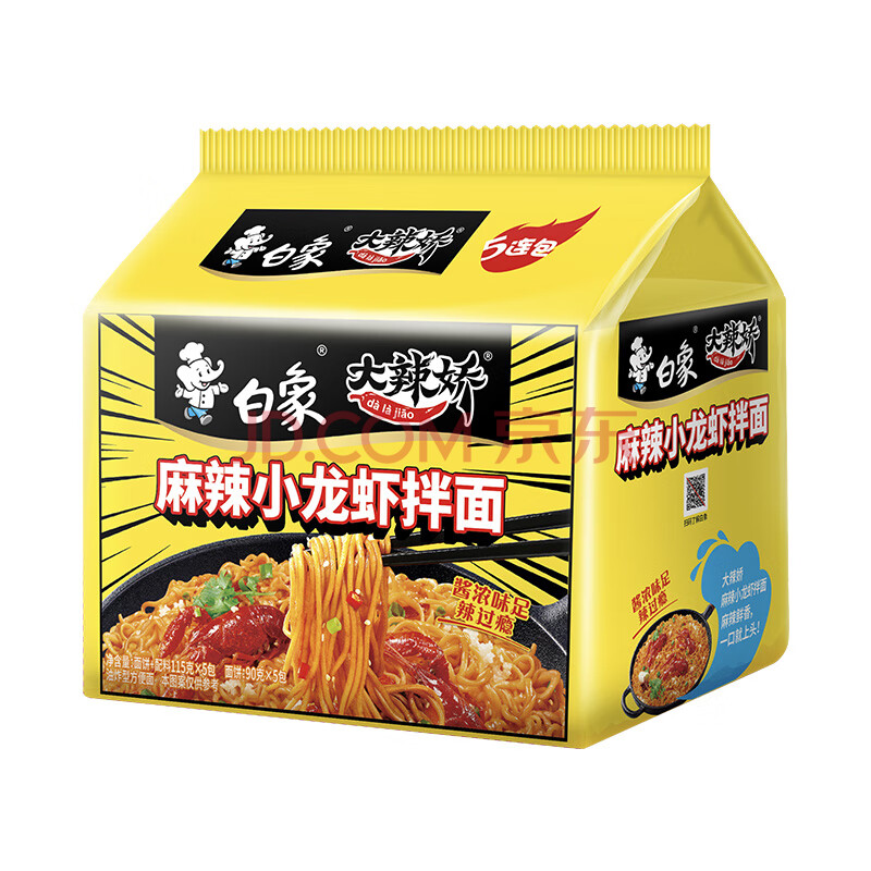 商品相册:白象 方便面 拌面 大辣娇麻辣小龙虾干拌面115g*5袋第