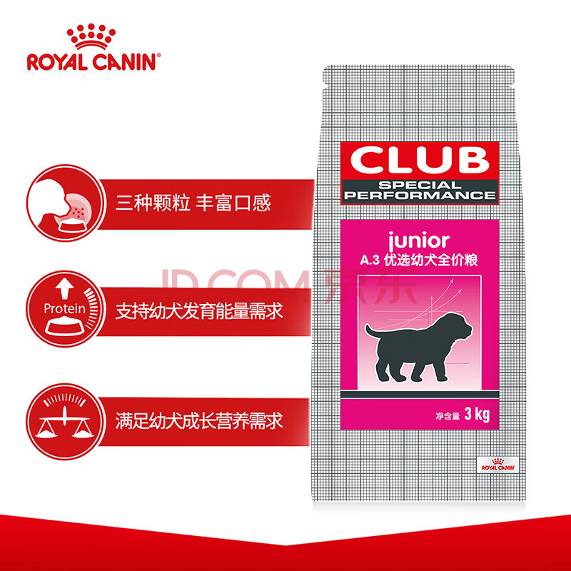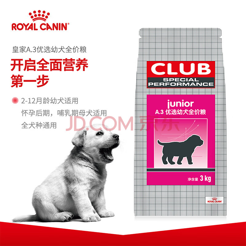 商品相册:皇家狗粮 幼犬狗粮 犬粮 通用犬型 A3 通用粮 2-12月 3KG第