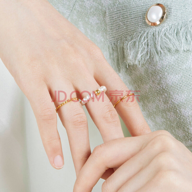 商品相册:六福珠宝18K金mipearl系列淡水珍珠戒指 F87KRTB002Y 总重约0.97克-16粒第