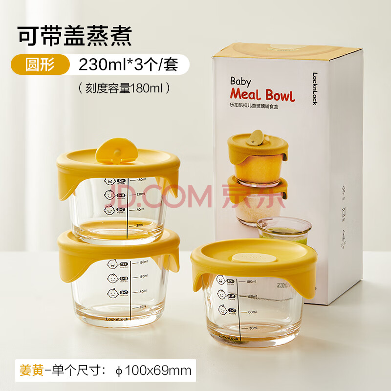 商品相册:乐扣乐扣婴儿辅食盒玻璃可蒸煮宝宝带盖米糊杯肉泥冷冻分装盒姜黄圆形第