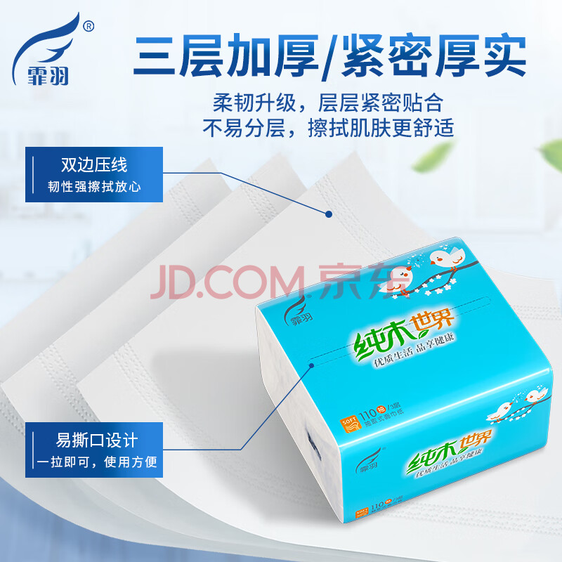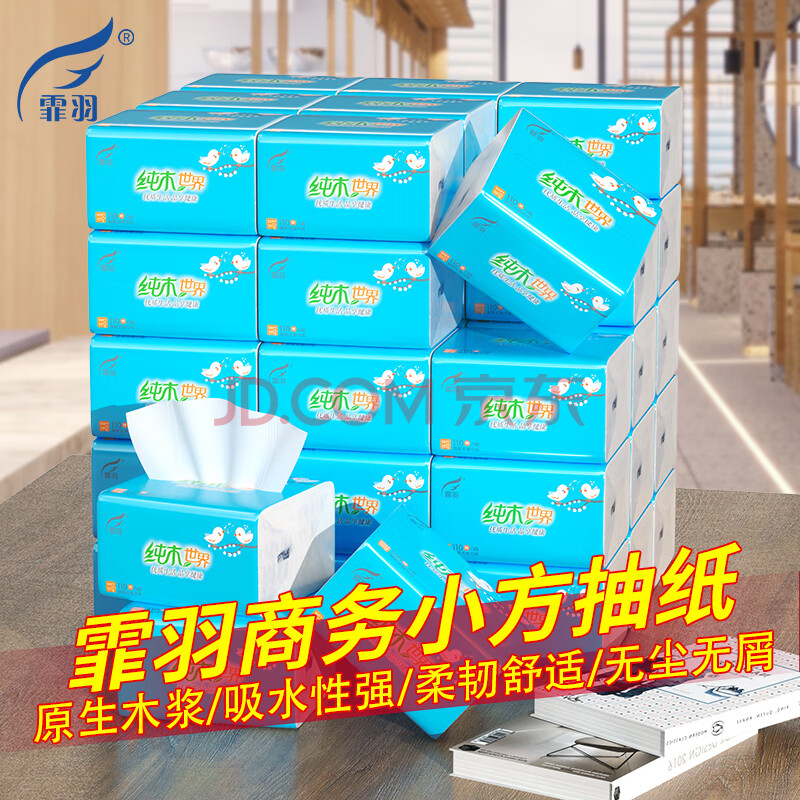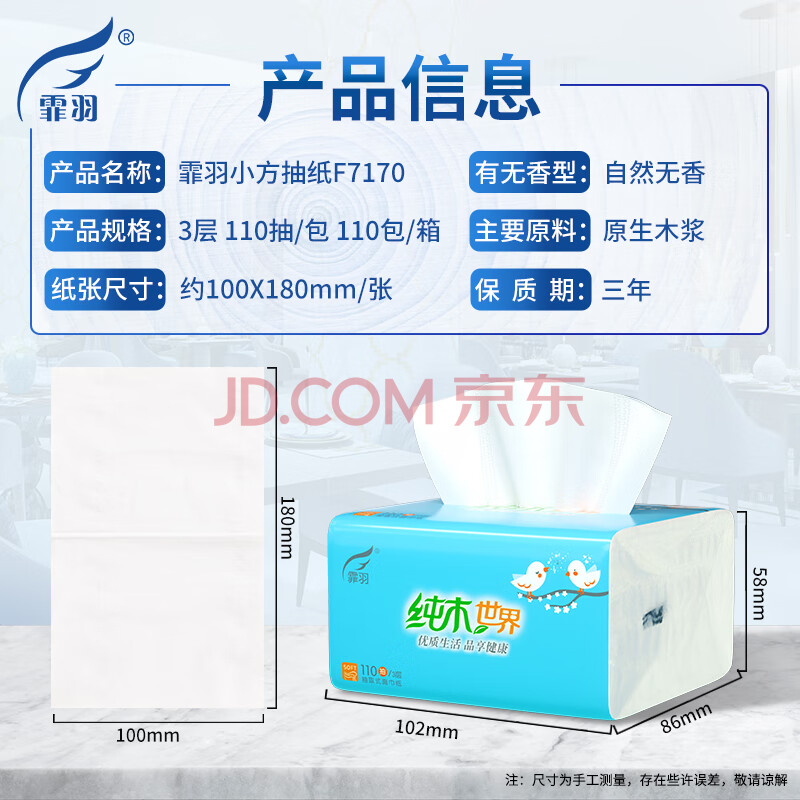 商品相册:霏羽小方抽纸3层110抽*110包商用酒店火锅店面巾纸餐巾纸整箱F7170第