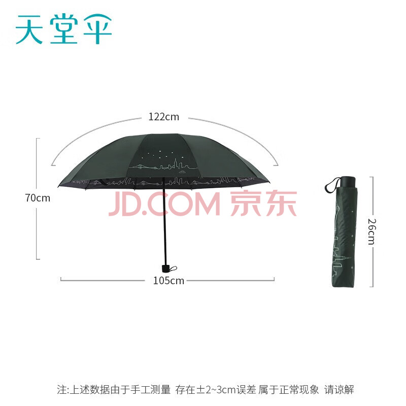 商品相册:天堂 双人晴雨伞三折 雨伞双人十骨全钢加大加固伞抗风晴雨 纽曼绿第