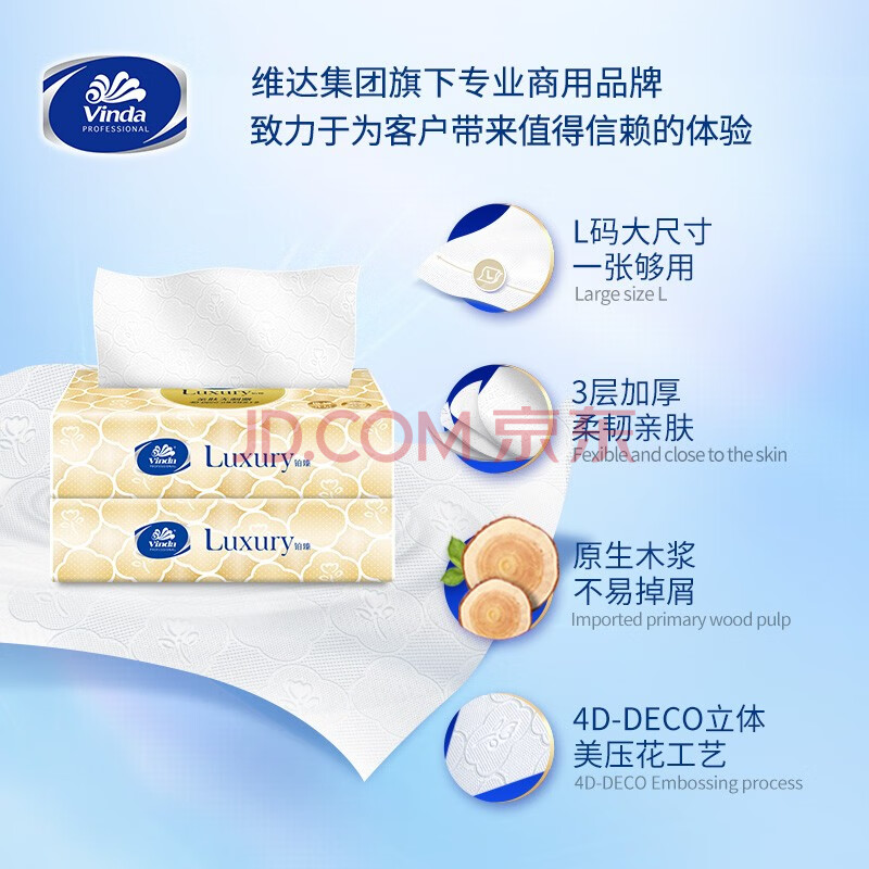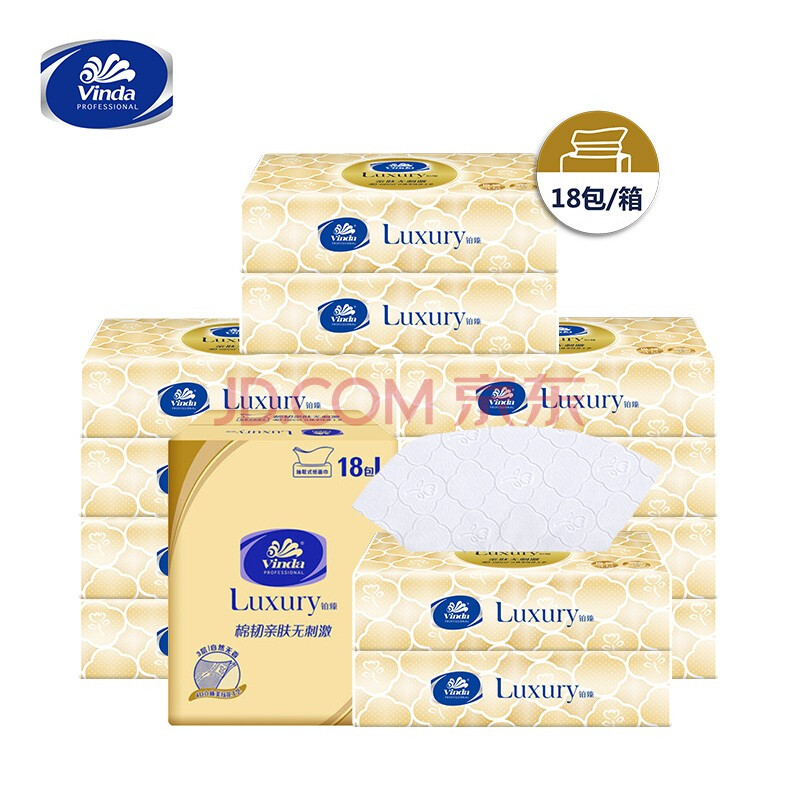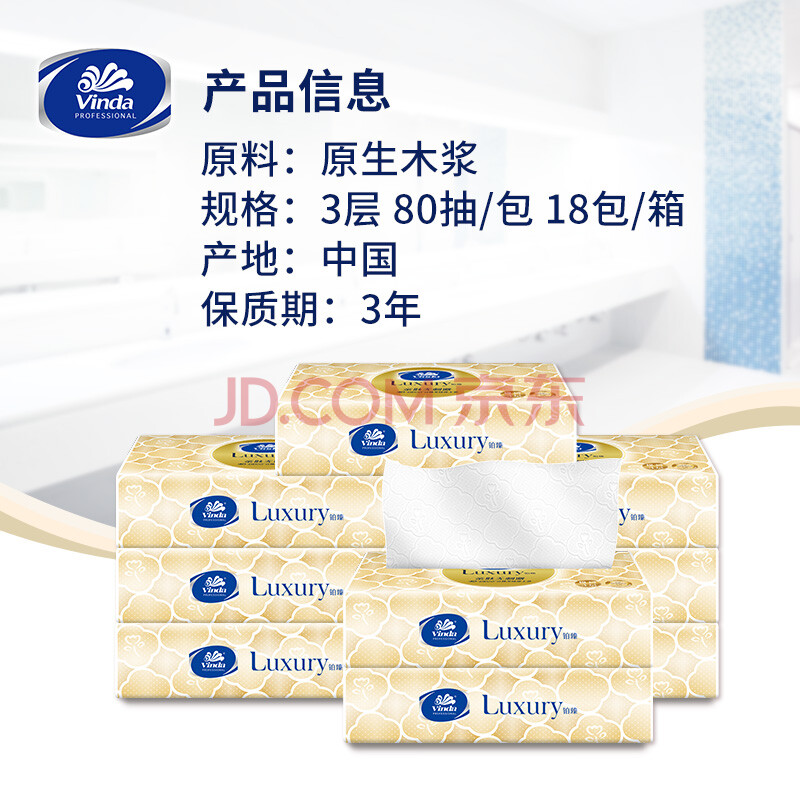 商品相册:维达抽纸3层80抽*18包L码 铂臻系列天然无香酒店客房餐厅整箱销售第