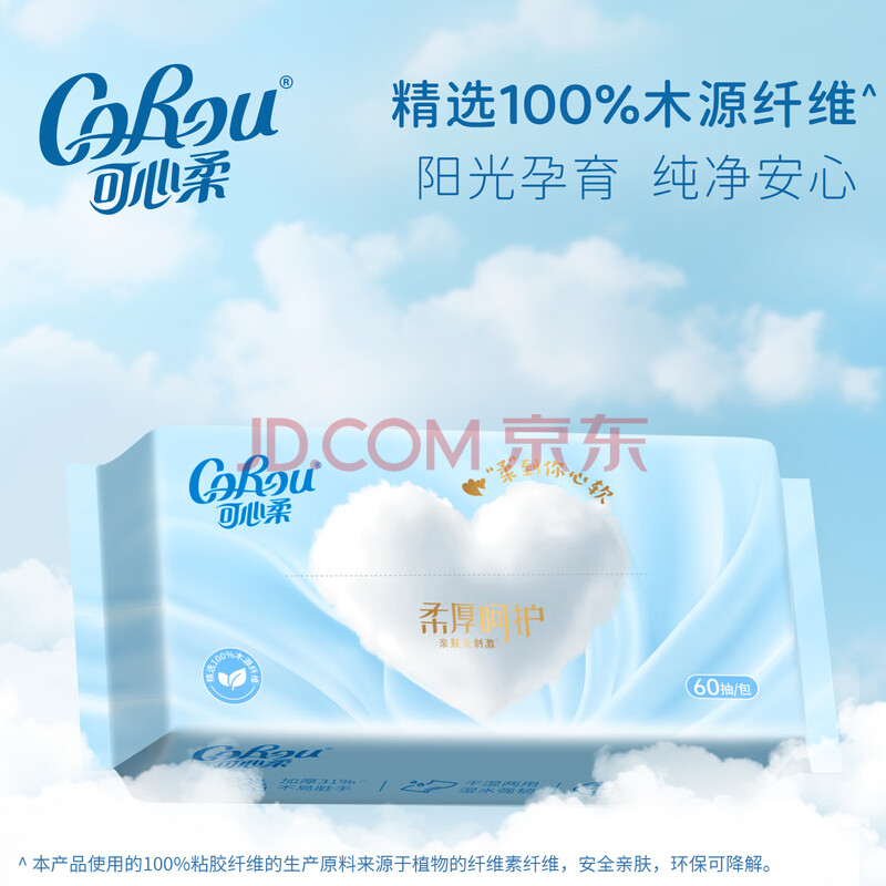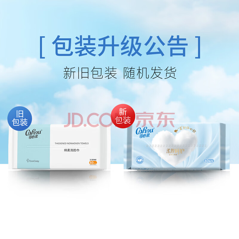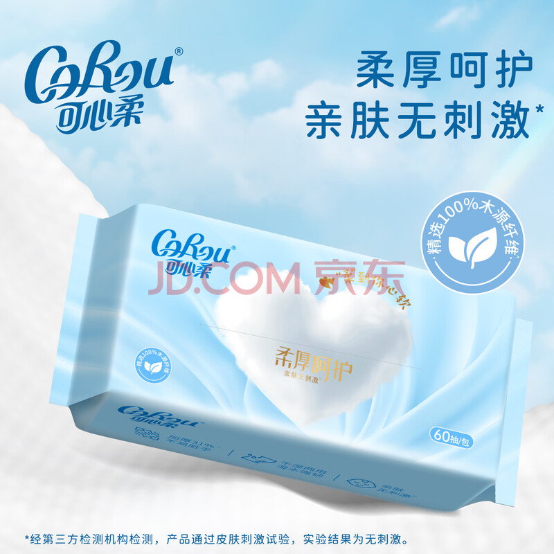 商品相册:可心柔(COROU)洗脸巾 60抽*4包 干湿两用 加大加厚 一次性绵柔巾 温和无刺激第1张/共6