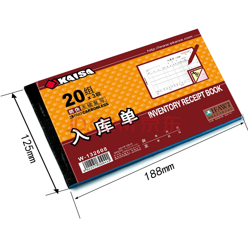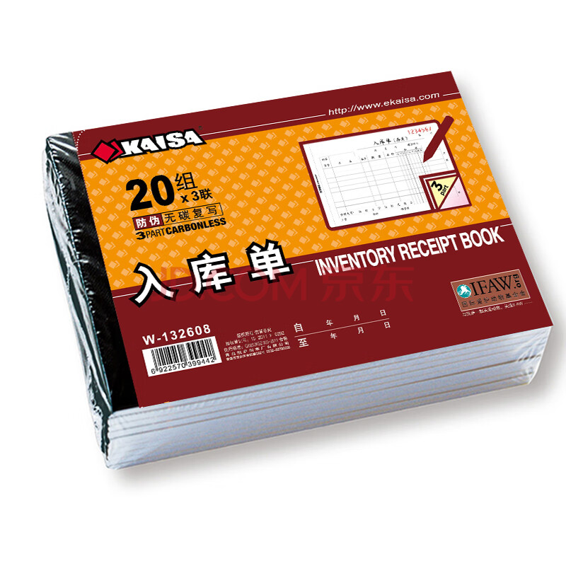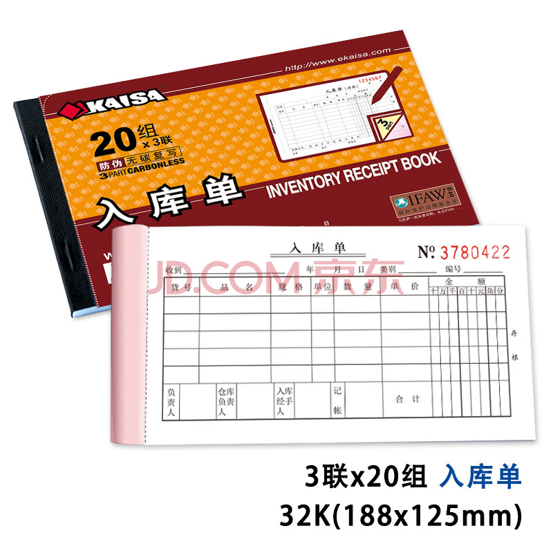商品相册:凯萨(KAISA)32K/三联入库单 3联20组无碳复写票据仓储存库单 财会用品(188*125mm) 10本装 可定制W132608第