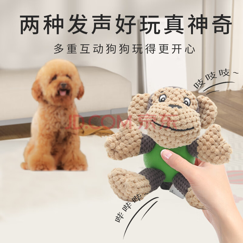 商品相册:宜特(EETOYS)布绒猴子狗狗玩具磨牙耐咬趣味发声幼犬陪伴解闷防拆家宠物用品第1张/共9