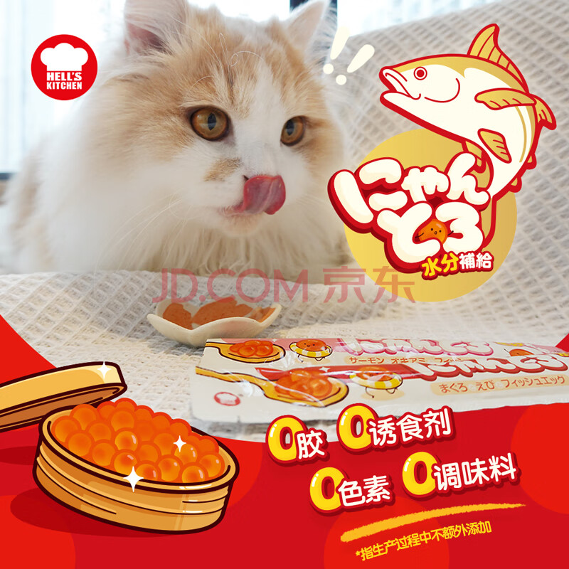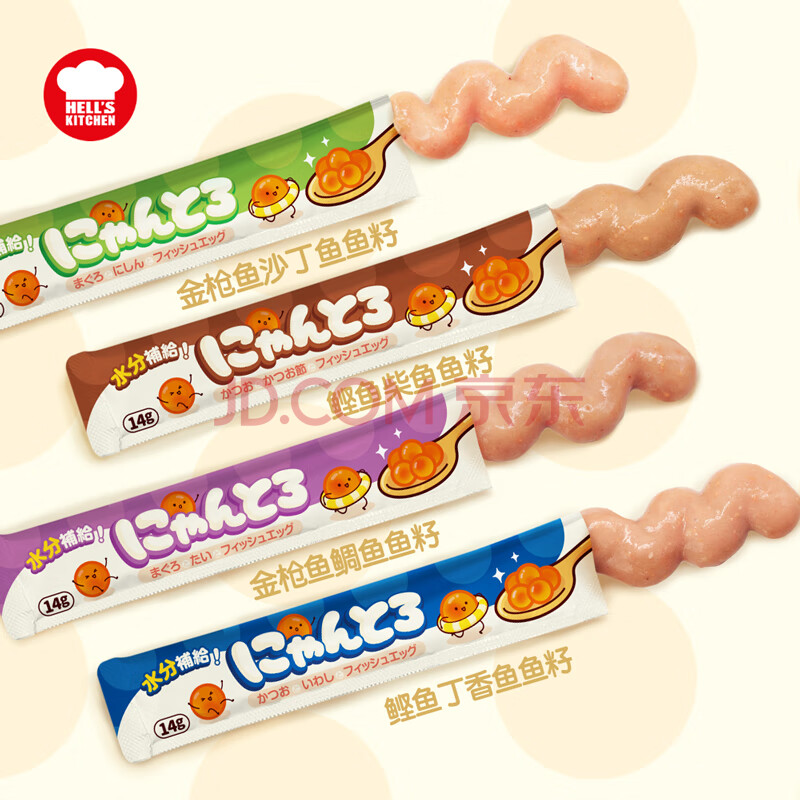 商品相册:地狱厨房(Hell's Kitchen)猫零食鱼籽猫条成猫补水营养猫咪湿粮噜噜条混合口味14g*32支第