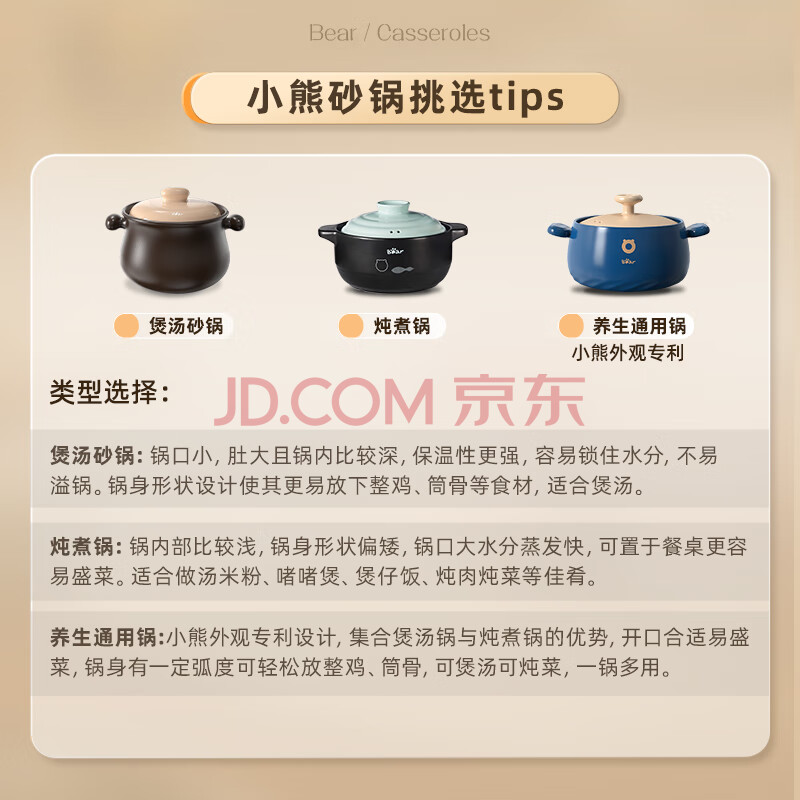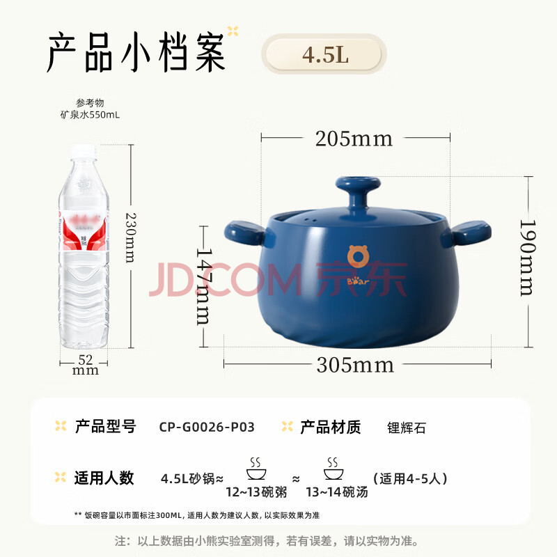 商品相册:小熊(Bear)砂锅 煲汤锅耐高温不开裂 4.5L大沙锅 宽口炖锅陶瓷锅G0026-P03第