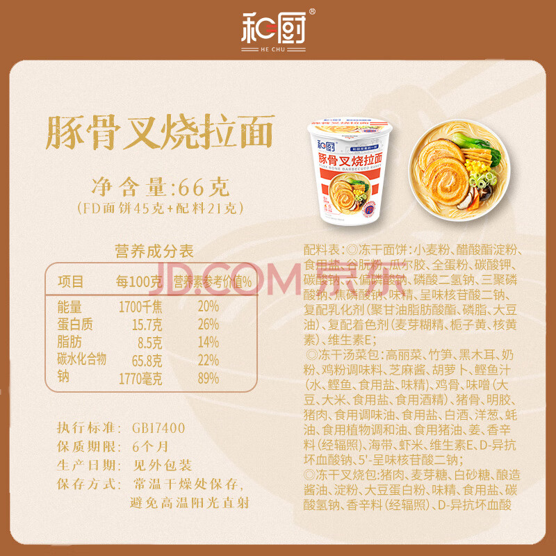 商品相册:和厨方便面泡面FD冻干面豚骨叉烧拉面66g*6桶新旧包装随机发货第
