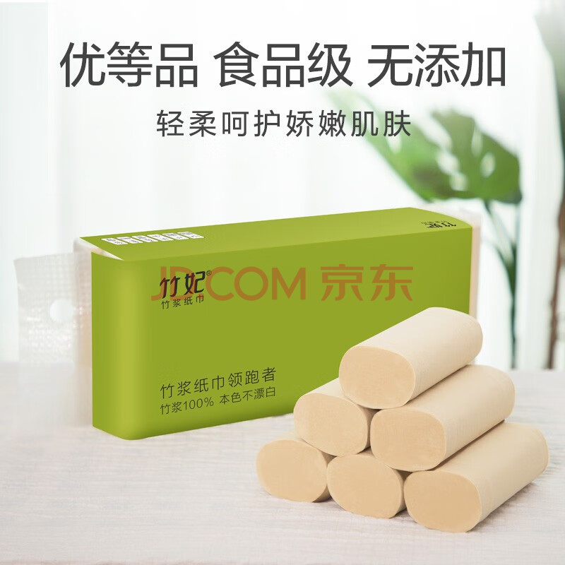 商品相册:竹妃本色卷纸4层112g*30卷无芯竹浆纸巾卫生纸 厕纸擦手纸整箱第