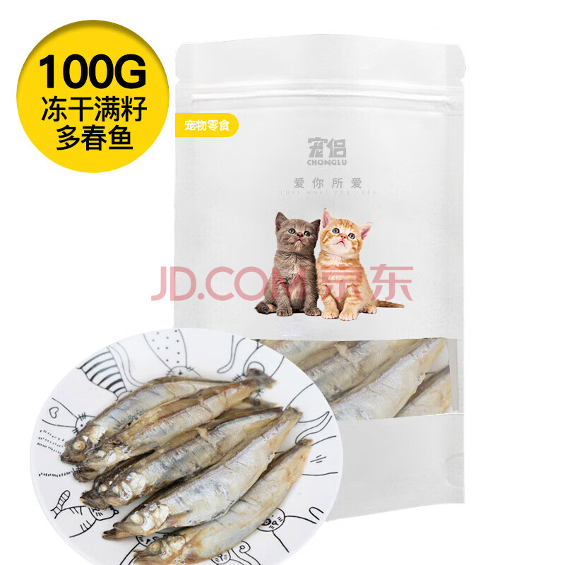 商品相册:宠侣宠物冻干满籽多春鱼猫零食猫小鱼干成猫幼猫磨牙洁齿零食100g*1袋第