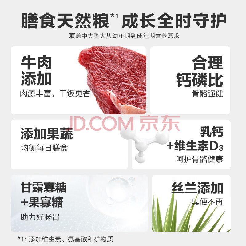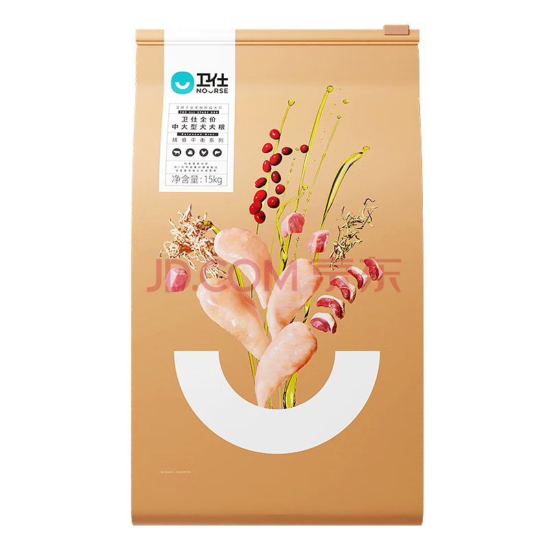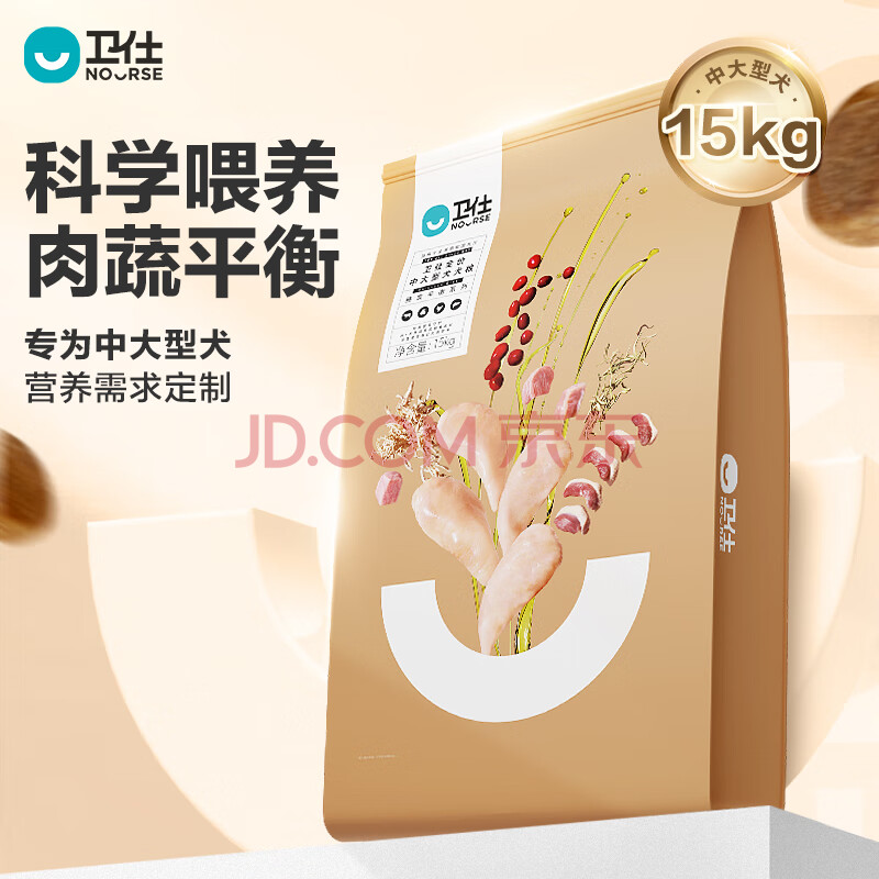 商品相册:卫仕(NOURSE)膳食中大型犬粮 狗干粮 中大型犬全价狗粮 牛肉蔓越莓 15kg*1袋第