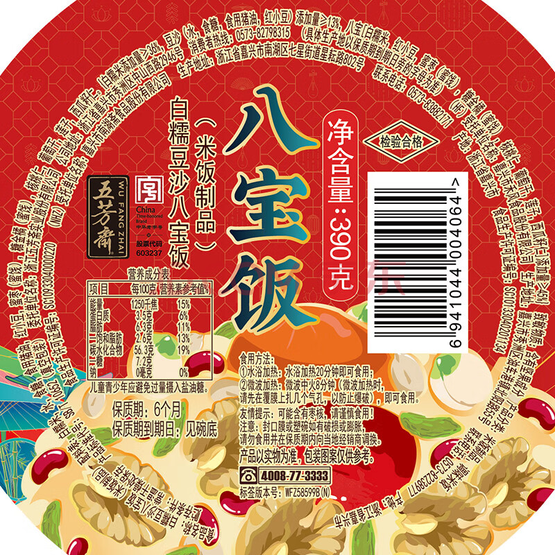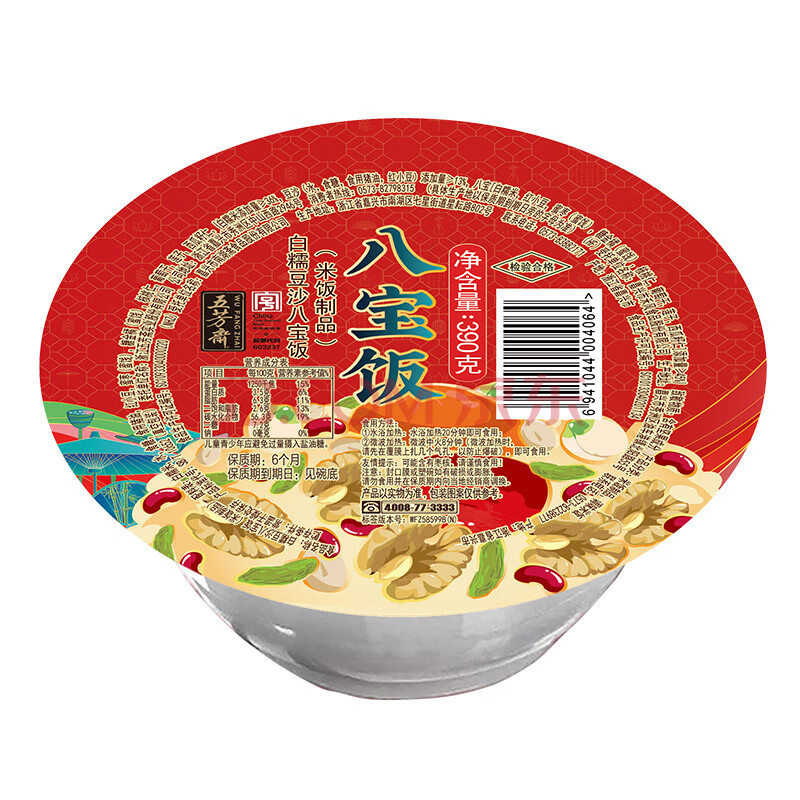 商品相册:五芳斋八宝饭白糯豆沙方便米饭速食代早餐微波炉加热白糯豆沙八宝饭390g第