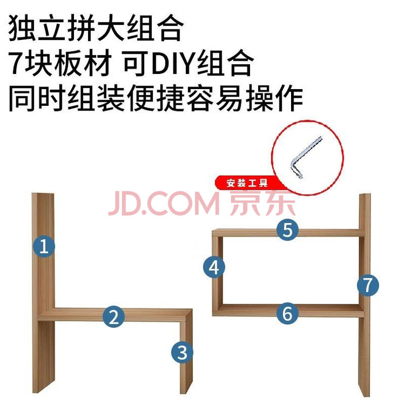 商品相册:金隆兴可伸缩桌面小书架 办公文具收纳 家用厨房储物置物架 浅胡桃 6353第