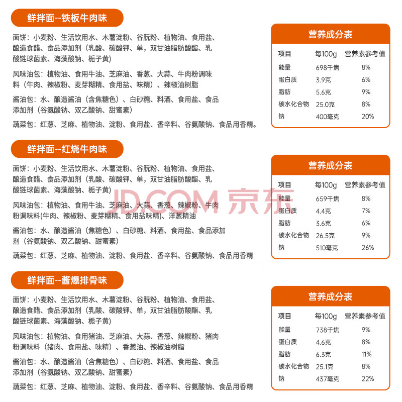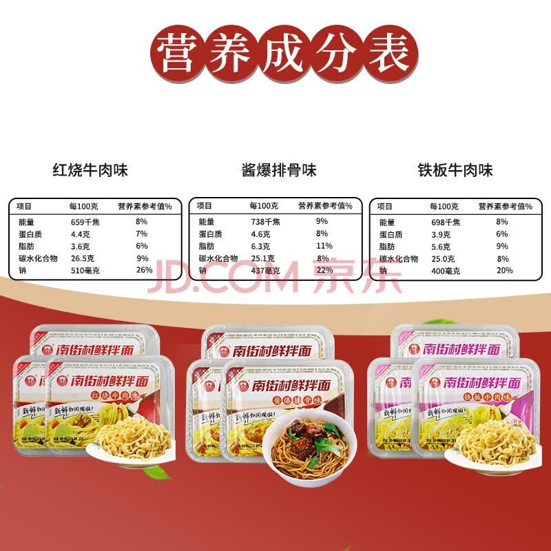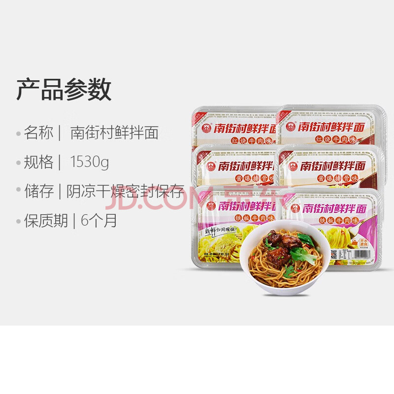 商品相册:南街村 鲜拌面红烧牛肉酱排骨铁板牛肉3味6盒泡面干拌面速食免煮1530g第