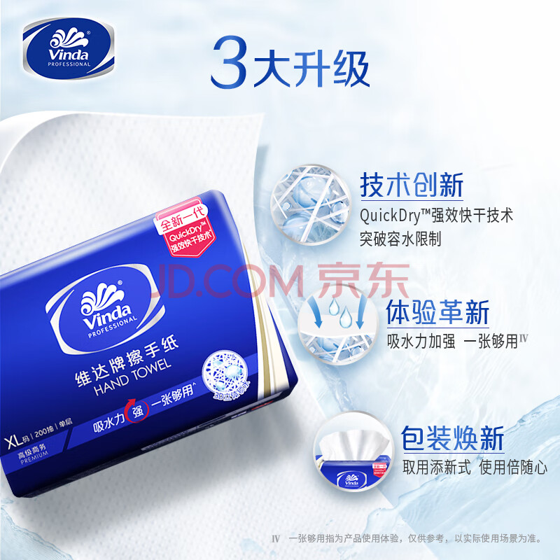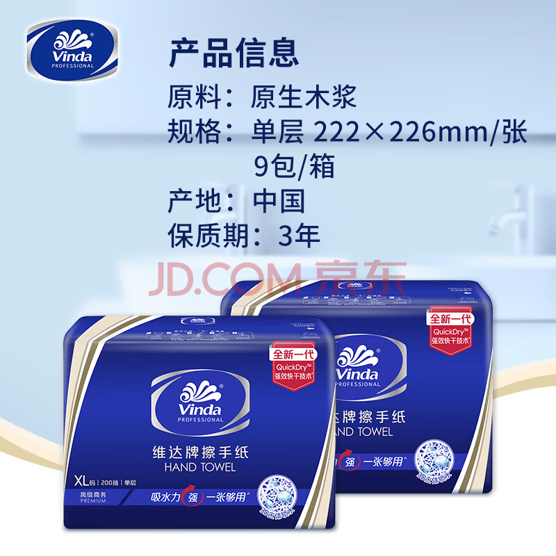 商品相册:维达擦手纸1层200抽*9包XL码加大 酒店餐厅卫生间商用抽纸巾整箱第