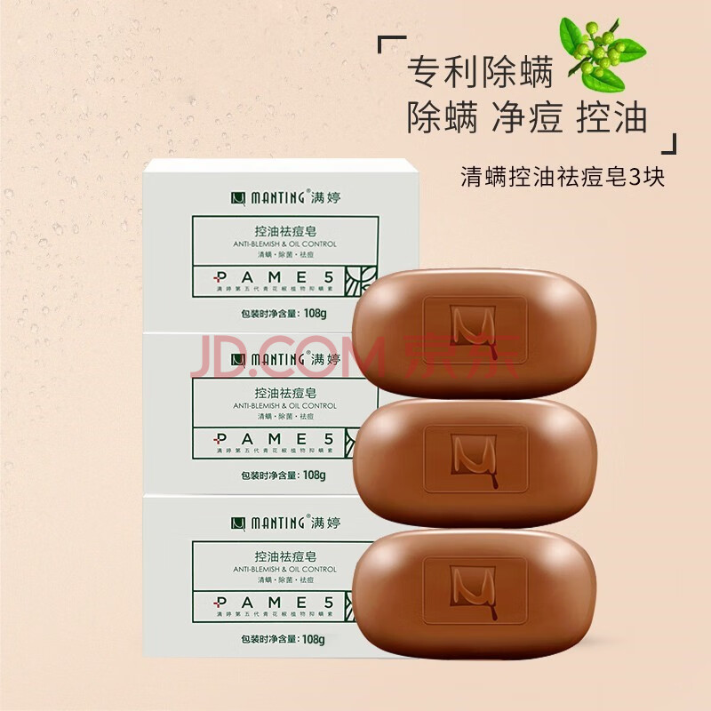 商品相册:满婷(MANTING)清螨控油祛痘皂108g*3块(除螨虫香皂螨婷肥皂洁面皂沐浴露非硫磺)第
