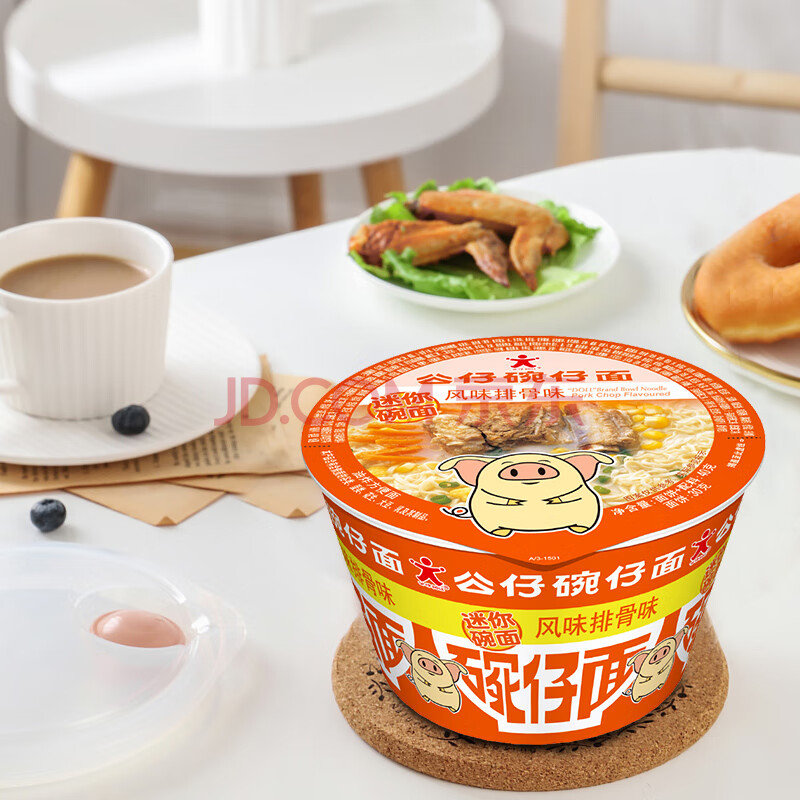 商品相册:公仔方便面迷你碗仔面 风味排骨味 40g*18碗整箱装 泡面速食零食早餐第
