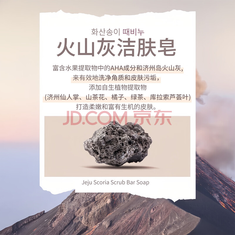 商品相册:無瑾花 韩国进口 济州岛火山灰洁面皂100g茶香型 深层吸附油脂清洁毛孔第