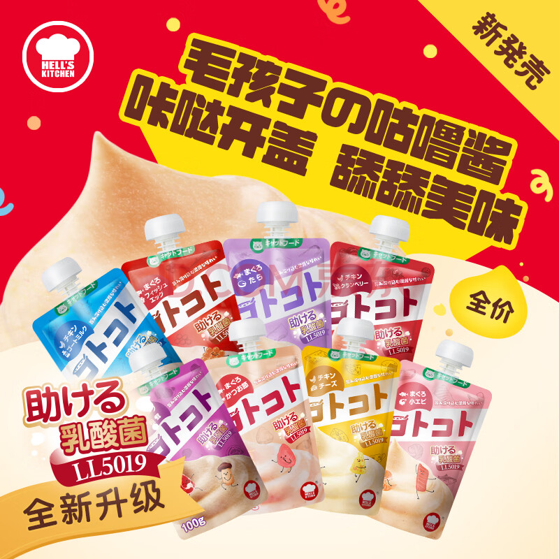 商品相册:地狱厨房(Hell's Kitchen)咕噜酱成猫湿粮全价酱包猫条猫咪营养罐头 混合装100g*6袋第