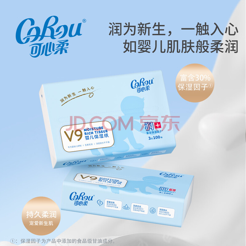 商品相册:可心柔(COROU) 抽纸 3层100抽*6包M码婴儿柔纸巾 乳霜纸 云柔巾 湿纸巾 餐巾纸第
